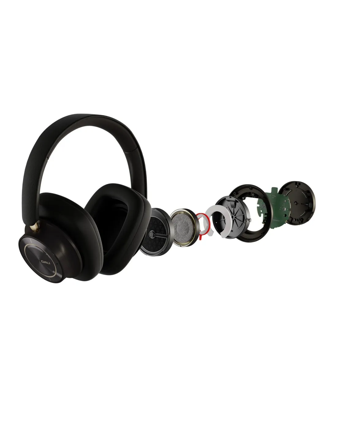 Auriculares inalámbricos de alta fidelidad con cancelación activa de ruido, Bluetooth 5.2, audio USB-C 24 bit/96 kHz y drivers SMC de 50 mm. Hasta 35 h de autonomía, dos modos de sonido (Hi-Fi y Bass) y construcción premium en piel auténtica. Calidad DALI sin compromisos.