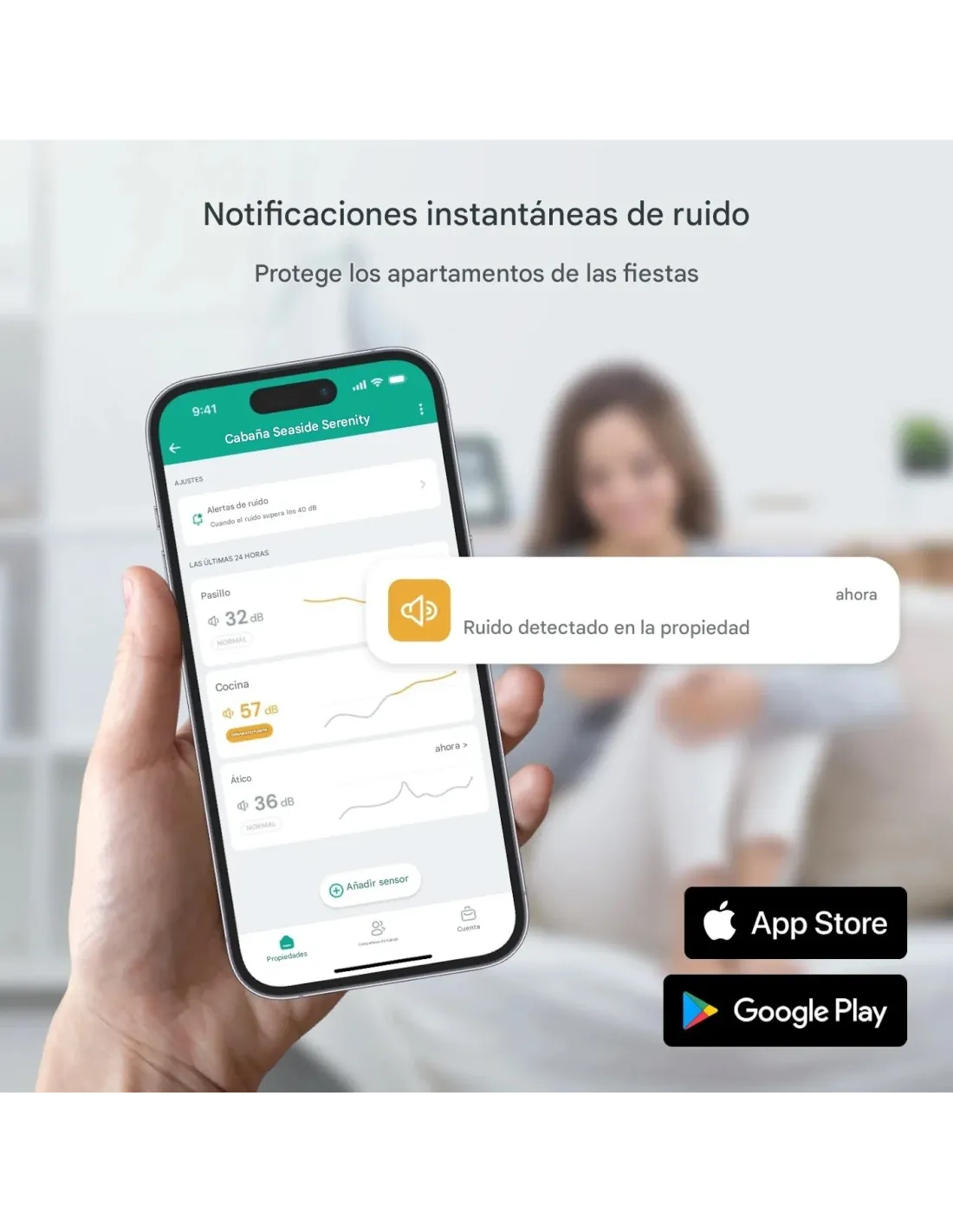 - 🔒 Protección Antisabotaje: Si un huésped intenta desconectar el sensor, recibirás un aviso crítico inmediato en tu móvil, vivas donde vivas.