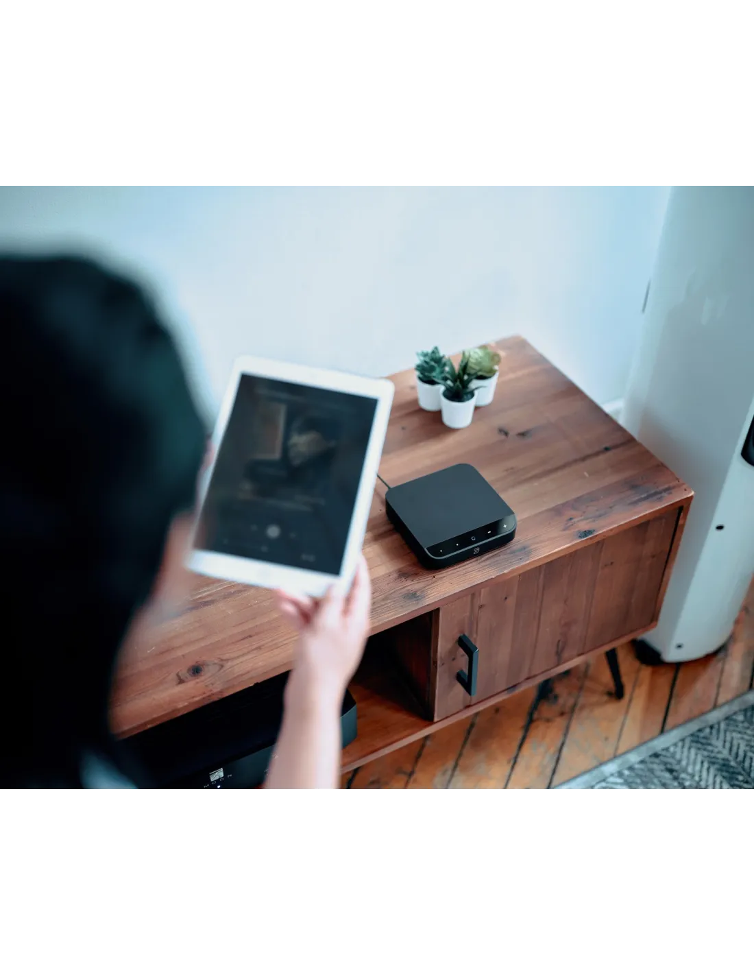 Streamer musical compacto con DAC ESS SABRE, Wi-Fi dual-banda, Bluetooth aptX Adaptive y sistema BluOS. Reproduce audio Hi-Res y actualiza cualquier equipo HiFi con streaming moderno y multiroom.